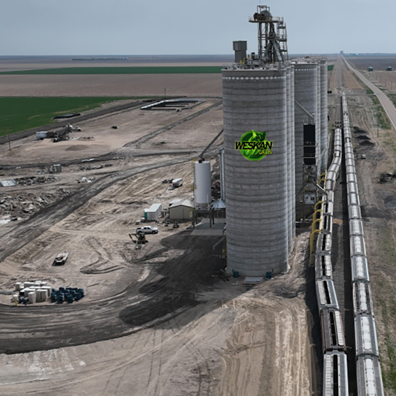 Weskan Grain will have a storage capacity of 4.5 million bushels and be capable of loading grain trains up to 120 railroad cars in length. The facility will be capable of receiving 65 trucks per hour during the peak harvest season, and over 50 trucks per hour during the offseason, with room to expand. Large unit trains will be loaded in under 10 hours.